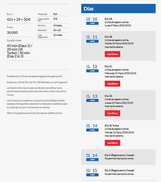 El Main Event, con un buy-in de 500€, marcará también el inicio de la lucha por la clasificación general del Campeonato de España de Poker por PokerStars 2026, uno de los grandes objetivos de la temporada.